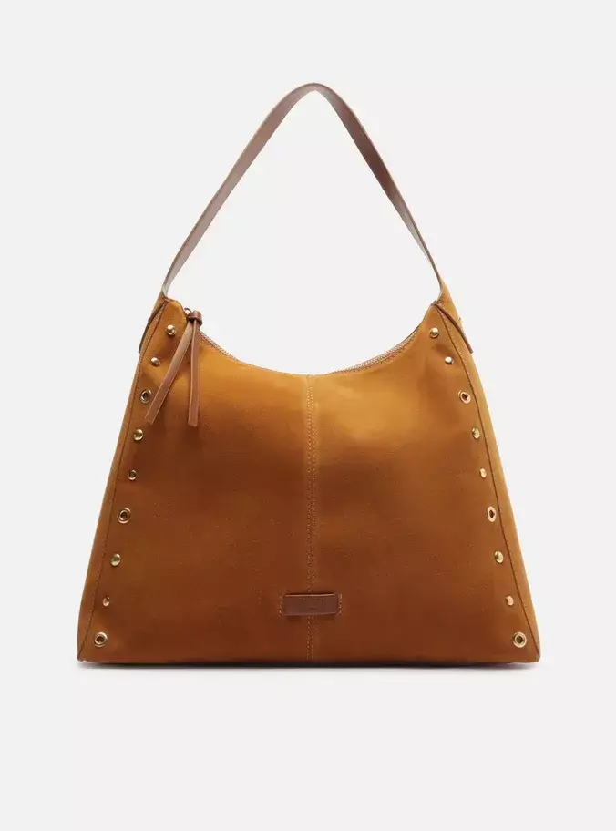 Aposta Certa: A prática bolsa hobo surge com inspo boho. Aposta nos rebites e ilhoses, no couro acamurçado e tem tudo para protagonizar suas produções. Combine com jeans e bota, além de muitos acessórios metálicos.