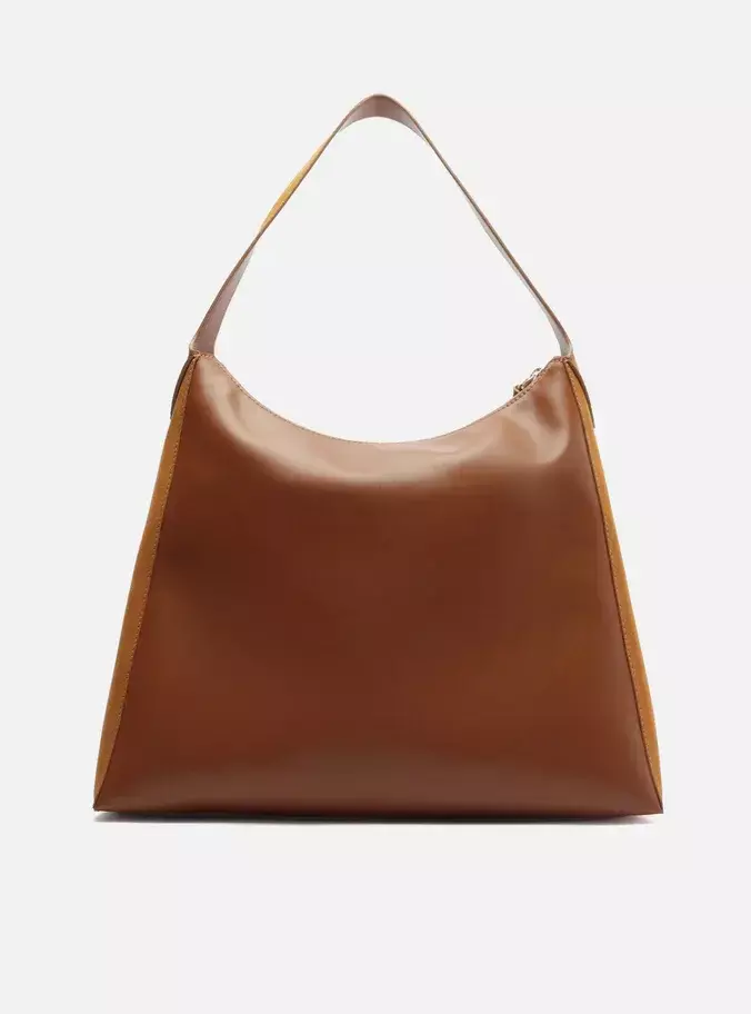 Descrição: Bolsa feminina hobo grande acamurçada marrom. O acessório tem formato estruturado e acabamento macio. Traz alça de ombro curta. O fecho é superior em zíper com puxador. Conta com detalhe em rebites e ilhoses aplicados nas duas laterais da capa, além de costura central e tag em couro com o nome da marca.