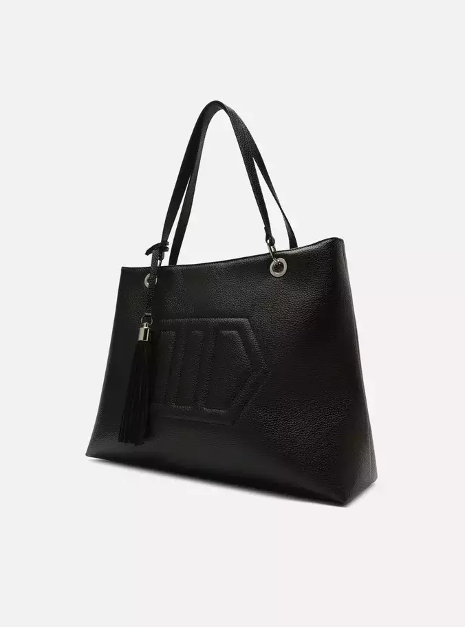 Descrição: Bolsa feminina hobo grande preta. O acessório tem formato estruturado e acabamento texturizado. Possui duas alças de ombro presas por ilhoses e argolas metálicas e fecho superior em zíper com puxador. Conta com bag charm em barbicacho de camurcina e costura marcada em formato geométrico na capa.