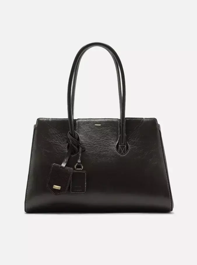 Descrição: Bolsa feminina shopping grande de couro marrom. O acessório tem formato estruturado, acabamento liso, recortes na parte superior para saída das alças e laterais com redutores em botões. Traz alças de ombro estruturadas. Com fecho superior em zíper, puxador em tira e bolso interno. Acompanha dois bag charm, um liso em couro e outro acamurçado com matelassê e detalhe em metal, presos à bolsa por tiras finas.
