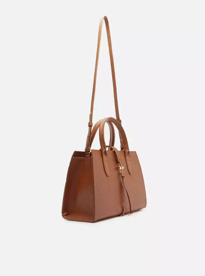 Descrição: Bolsa tote grande marrom. O acessório tem formato estruturado e acabamento texturizado. Traz duas alças de mão e alça tiracolo regulável. Possui fecho superior em zíper. Conta ainda com lapela, presa por imã, com metal e tiras frontais.