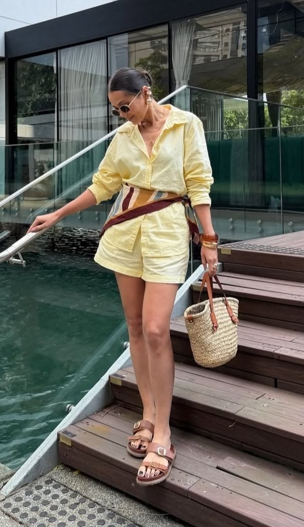 Descrição: Esta sandália rasteira feminina apresenta um design minimalista com uma tira curva que passa sobre os dedos e a parte superior do pé, criando um visual elegante e confortável. Possui salto rasteiro e bico arredondado, com palmilha bege e inscrição da marca.