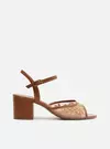 Descrição: Sandália feminina marrom. O sapato tem salto médio bloco e formato arredondado na ponta. Traz tira sobre os dedos em tule com bordado floral bege. Possui tira fina no calcanhar, conectada à tira fina no tornozelo que fecha em fivela lateral. Com palmilha marrom e inscrição do nome da marca.