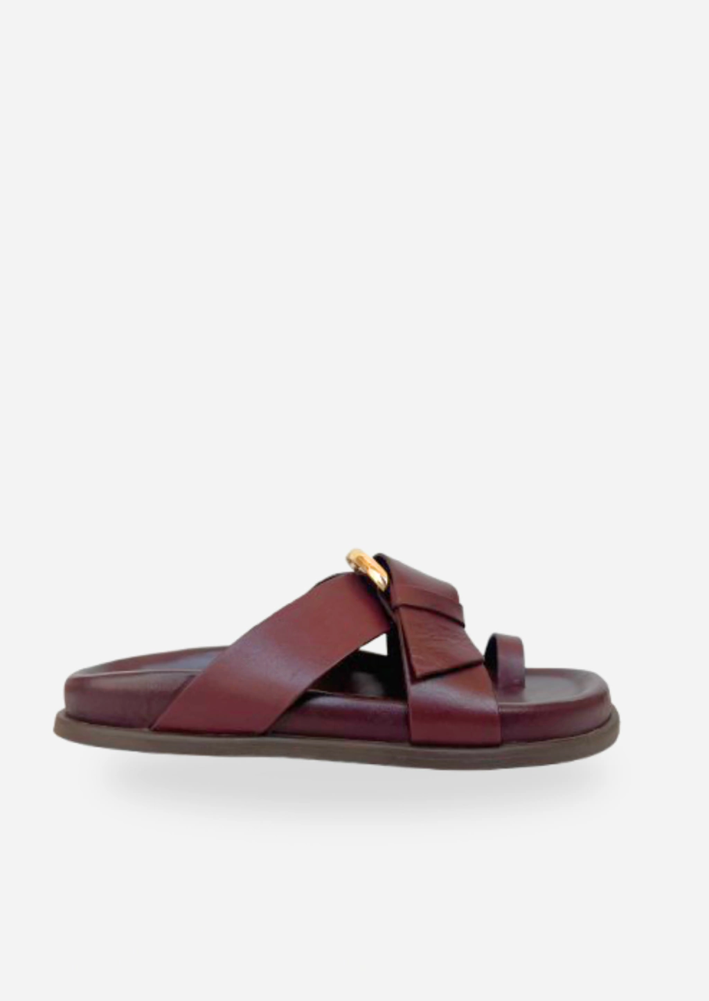 Aposta Certa: A papete em couro e com tiras largas é muito comfy e garante um toque elegante e despojado. Vem ainda com fivela metálica imponente, expressando as tendências da temporada.