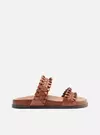 Descrição: Sandália papete feminina marrom. O sapato tem salto rasteiro, palmilha com formato anatômico e inscrição do nome da marca. Possui solado flatform, base emborrachada e formato arredondado na ponta. Traz tiras largas e tramadas sobre os dedos e a parte superior do pé.