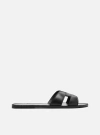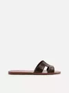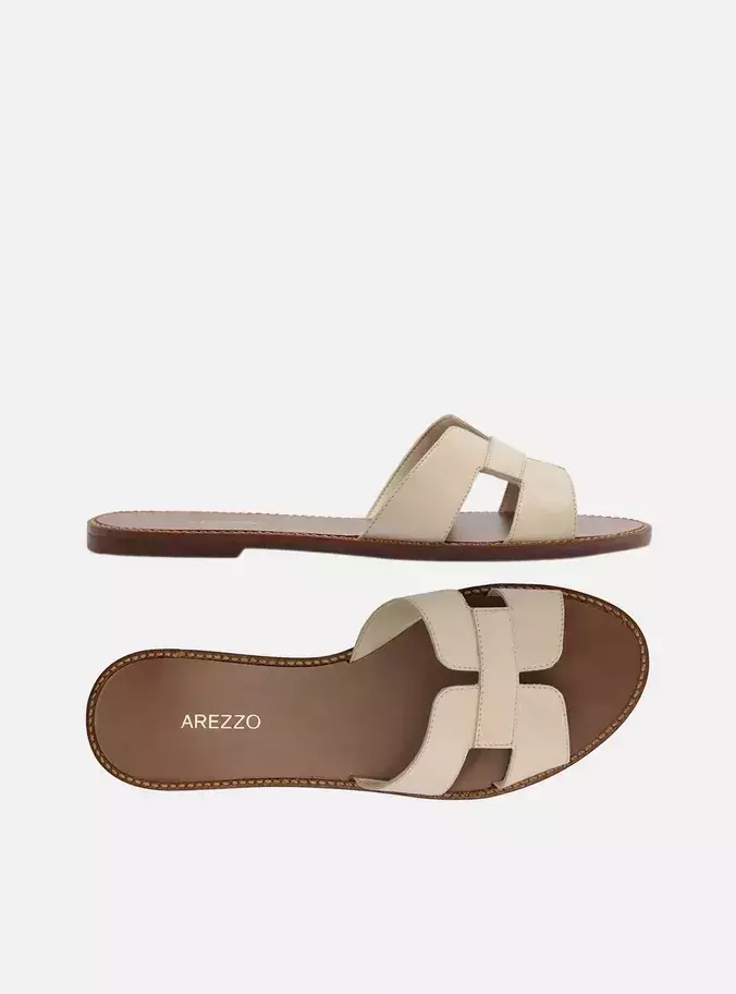 Descrição: O modelo tem sola flat e formato arredondado na ponta. Traz cabedal em tiras vazadas no formato H, além de costuras pesponto por todo o contorno. Com palmilha na cor do modelo e inscrição do nome da marca. Aberta, exibe todo o pé.