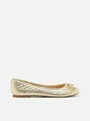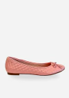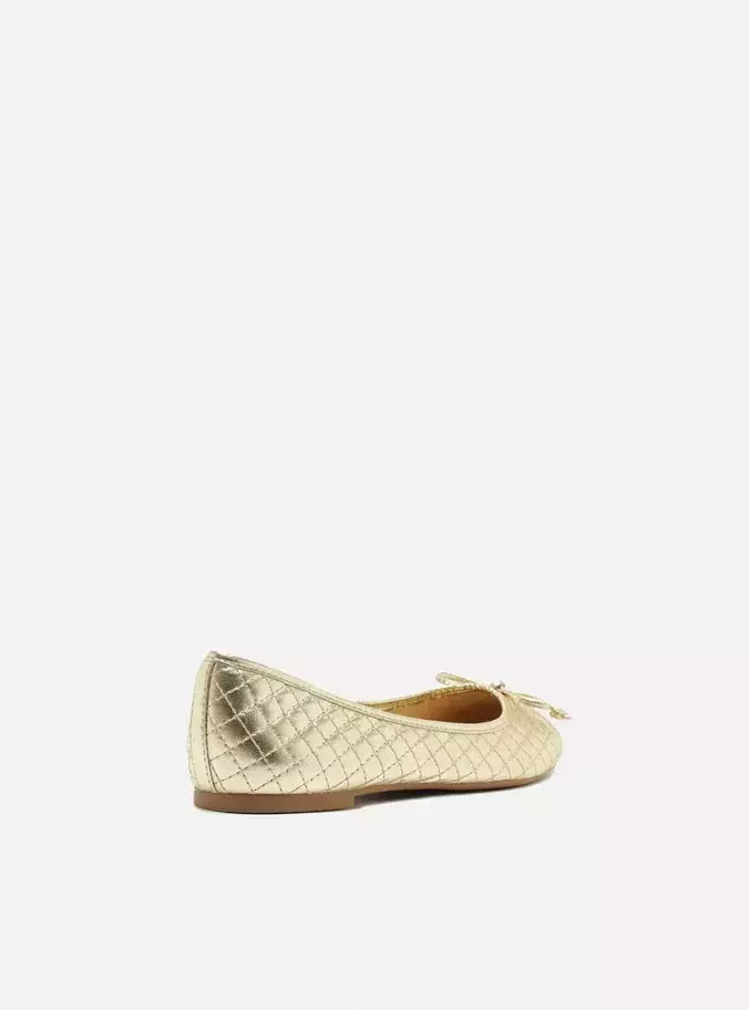 Descrição: Sapatilha off-white. O modelo tem salto rasteiro e bico redondo. Traz cabedal em matelassê e recorte arredondado sobre o peito do pé. Fechada, possui ainda aplicação de laço pequeno no cabedal. Com palmilha da cor do modelo e inscrição do nome da marca, a sapatilha exibe todo o peito do pé.