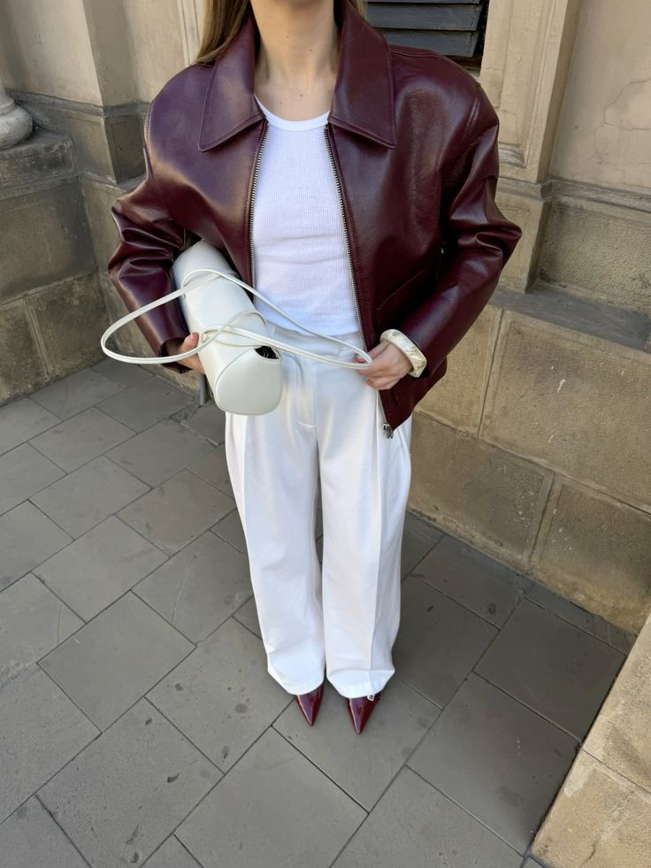 Descrição: Scarpin vinho de couro acamurçado. O sapato tem salto alto bloco e ponta fina. Fechado, traz cabedal com recorte arredondado na parte superior do pé e formato ajustado nas laterais. Com palmilha lisa da cor do scarpin e inscrição do nome da marca.