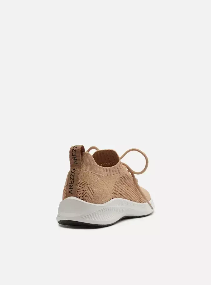Descrição: Tênis em knit bege de design minimalista, com cabedal em malha flexível e respirável que se ajusta perfeitamente ao pé. Possui fechamento em amarração com cadarços no mesmo tom, solado emborrachado leve e confortável, além de acabamento clean e versátil. Um modelo básico e funcional, perfeito para composições práticas e estilosas.